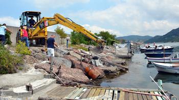 Varilde sızıntı ve koku vardı bizde Sahil Güvenlik ve İlçe Sağlık Müdürlüğü'ne haber verdik. Sahil Güvenlik incelemesini ardından iş makinesiyle daha güvenli bir yere aldık. Burada sağlık ekipleri inceleme yapacak" dedi.