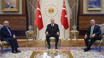 Cumhurbaşkanlığı Külliyesi'nde basına kapalı gerçekleşen kabulde, Dışişleri Bakanı Mevlüt Çavuşoğlu da hazır bulundu.