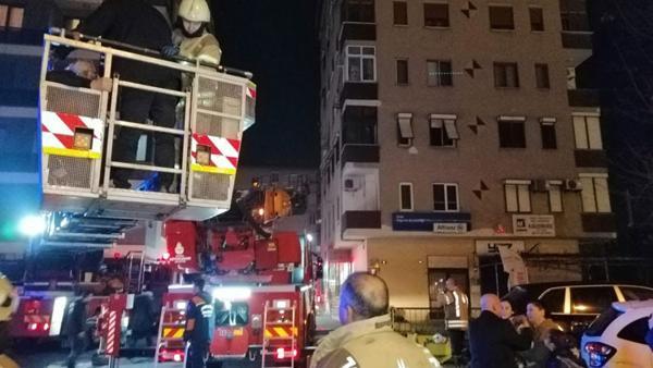 İtfaiye ekipleri yangına müdahale ederken, üst katlarda mahsur kalan çok sayıda apartman sakini itfaiye merdiveniyle kurtarıldı.