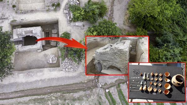 Mezarların içinde 1 bronz İmparator Caracalla (M.S. 211-217) sikkesi, gümüş kaplama İmparator Valerianus (M.S. 253-260) sikkesi bulundu. Tonozlu mezarın içinde ve batı kısmında yer alan örgü tekne mezar etrafı ve içinde, bir kısmı kırık ve eksik 4 cam şişe, 2 pişmiş toprak şişe, 11 pişmiş toprak kandil, Eros figürü başı, 3 pişmiş toprak kase, pişmiş toprak kase, pişmiş toprak pişirme çömleği, 5 kemik saç iğnesi, kemik kaşık parçası ve korozyona uğrayarak tahrip olmuş dikdörtgen bronz kutu parçası ile halkalı telkari bronz askı olabilecek olan mezar hediyeleri bulundu.
