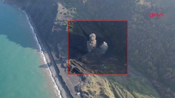 Zonguldak'ın Kilimli ilçesinde, inşaat kazısında bulunan ve 1. Dünya Savaşı sırasında Rus savaş gemilerince bırakıldığı tahmin edilen iki top mermisinin boş bir arazide patlatılması drone ile görüntülendi. İl Emniyet Müdürlüğü'nce kaydedilen görüntülerde top mermilerinin patlatıktan sonra oluşturduğu duman görülüyor.